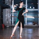 Heat up the stage with this modern latin dress. This knee-length dress features a crew neck, short sleeve. Made from nylon.