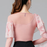 Your dancing closet is just begging to this chic latin/ballroom top. This solid color top features a v neck, short sleeve. Made from polyester.