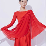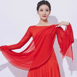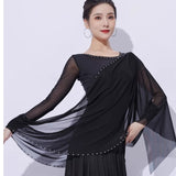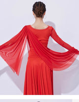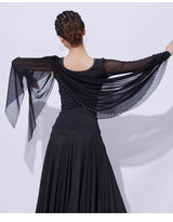 Your dancing closet is just begging to this chic latin/ballroom top. This solid color top features a round neck, long sleeve. Made from polyester.