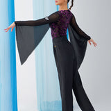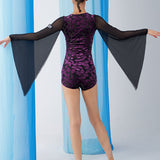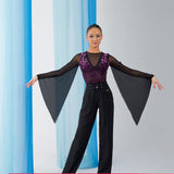 Shimmer and glow in this romantic latin/ballroom leotard. This solid color leotard features crew neck, bat sleeve. Made from polyester