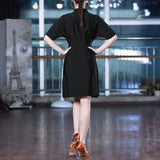 Bring about a memorable performance look with this modern latin dress. This knee-length dress features a high neck, short sleeve. Made from nylon.