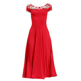 Shine with the glitz and glamour of Broadway in this elegant ballroom dress. This maxi dress features a boat neck, short sleeve. Made from polyester.