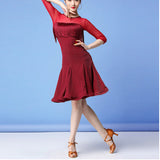 We are huge fans of this flattering latin dress. This knee-length dress features a round collar, 3/4 length sleeve. Made from microfiber.