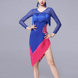 Add dimension and edginess to your outfit with this glamorous latin dress. This calf-length dress features a round neck, long sleeve. Made from milk silk.