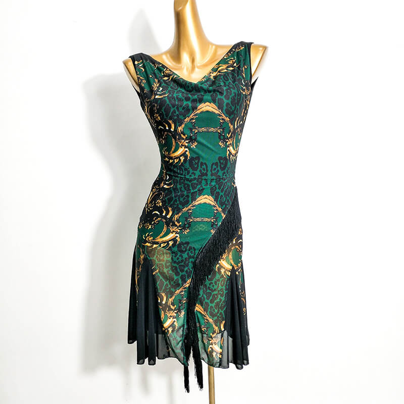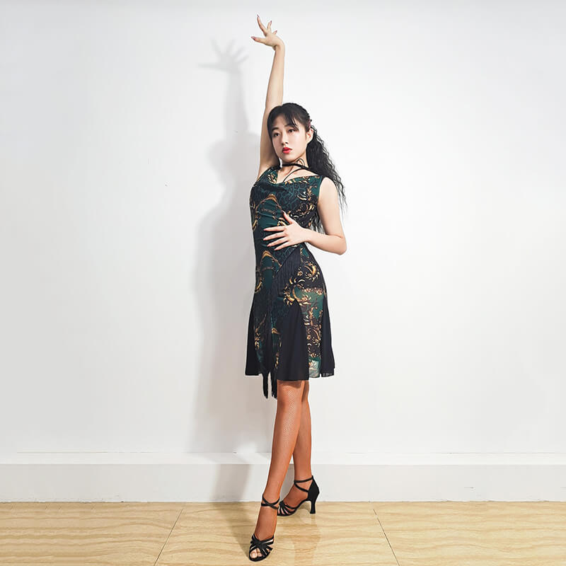 It is about time for you to embrace fun dancewear fashion and treat yourself to this stylish Latin dress. This short dress features a collarless, sleeveless. Made from mesh.
