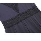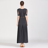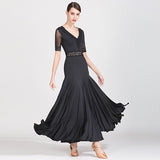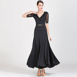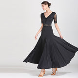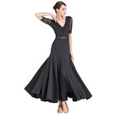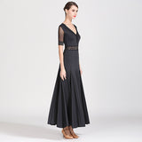 Give dimension to your body and your moves in this flattering ballroom dress. This maxi dress features a v neck, sheer sleeve. Made from ice silk.