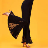 Your dancing closet is just begging to this modern Latin/ballroom pants. These pants feature a wide leg, medium-rise. Made from milk silk.