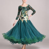 Boat Neck 3/4 Length Sleeve Ballroom Dress with Mesh