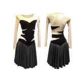 Take the stage in style in this chic Latin dress. This knee-length dress features a boat neck, long sleeve. Made from velvet.
