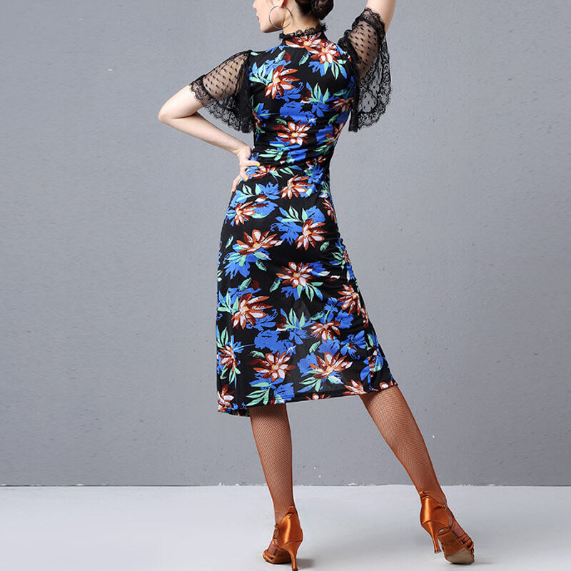 Turn some heads season and notch up some style points in this feminine latin dress. This calf-length dress features a high neck, short sleeve. Made from polyester.