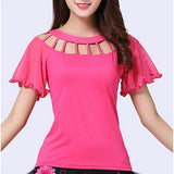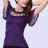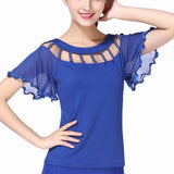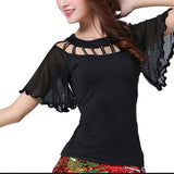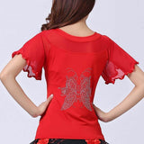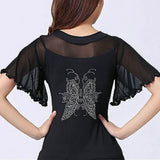 You'll look like a masterpiece in this modern ballroom top. This jeweled top features a round neck, batwing sleeve. Made from polyester.