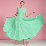 Spark the stage like a streak of lightning in this stunning ballroom dress. This long dress features a deep v neck, sleeveless. Made from ice silk.