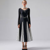 You're not crazy for wanting to wear this sparkly ballroom dress. This long dress features a v neck, long sleeve. Made from milk silk.