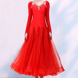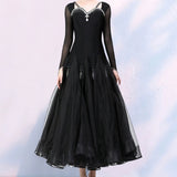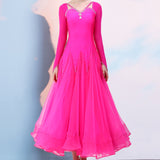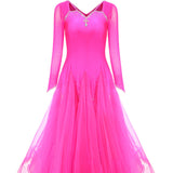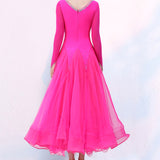 Win over any room in this pretty ballroom dress. This long dress features a v neck, long sleeve. Made from spandex.