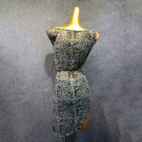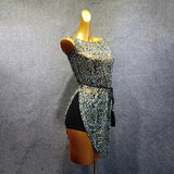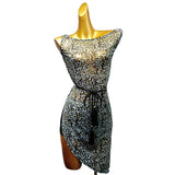 You'll look like a masterpiece in this flirty Latin dress. This short dress features a boat neck, sleeveless. Made from the mesh.