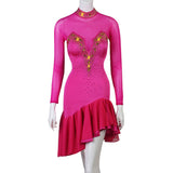 Heat up the stage with this modern Latin dress. This knee-length dress features a high neck, long sleeve. Made from polyester.