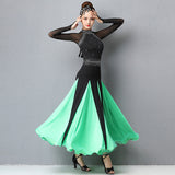 Take your performance to the next level with this elegant ballroom dress. This long dress features a high neck, long sleeve. Made from milk silk.