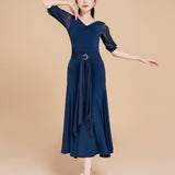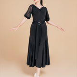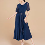 Win over any room in this pretty ballroom dress. This long dress features a v neck, shoet sleeve. Made from polyester.