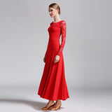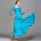 We are huge fans of this sparkly ballroom dress. This long dress features a boat neck, lace sleeve. Made from milk silk.