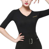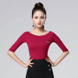 Upgrade your dancing wardrobe season by treating yourself to this simple Latin/ballroom top. This solid color top features a boat neck, short sleeve. Made from polyester.