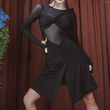 Bring about a memorable performance look with this modern latin dress. This knee-length dress features a round neck, long sleeve. Made from polyester.