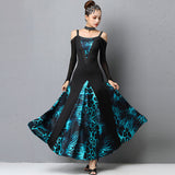 Heat up the stage with this bright ballroom dress. This long dress features a off shoulder, long sleeve. Made from milk silk.