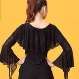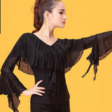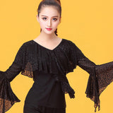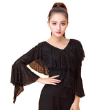 Spark the stage like a streak of lightning in this modern Latin/ballroom top. This solid color top features a v neck, puff sleeve. Made from milk silk.