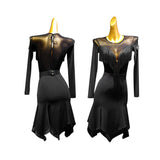 Shine with the glitz and glamour of Broadway in this chic Latin dress. This knee-length dress features a round neck, long sleeve. Made from mesh.
