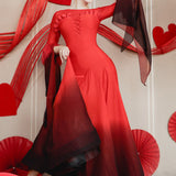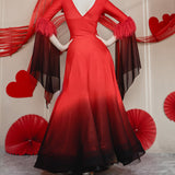 We are huge fans of this glamorous ballroom dress. This long dress features a crew neck, long sleeve. Made from nylon.