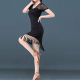 Round Neck Short Sleeve Latin Dress with Tassels