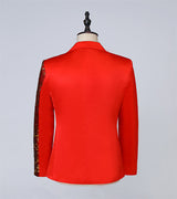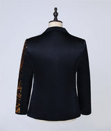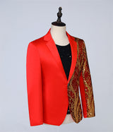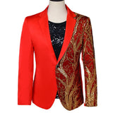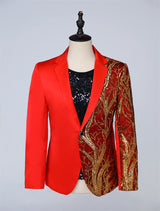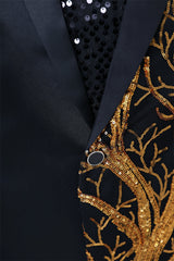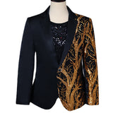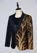- Features : The men's shiny sequins suit jacket with elegant notched lapel,1 exquisite button, features unique sequins pattern of tree design; full shoulder design and slim cut with 3D draping. When you put it on, it make you slimmer and sharp