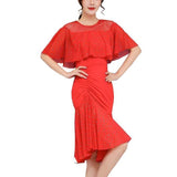Spark the stage like a streak of lightning in this pretty latin dress. This knee-length dress features a boat neck, ruffle sleeve. Made from polyester.