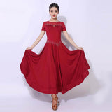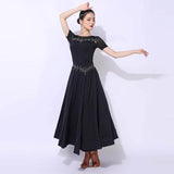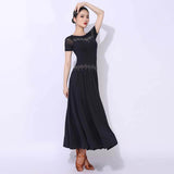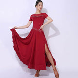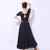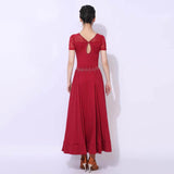 Take your performance to the next level with this elegant ballroom dress. This long dress features a crew neck, short sleeve. Made from polyester.