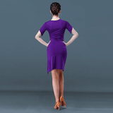 Take the stage in style in this basic latin dress. This short dress features a v neck, short sleeve. Made from milk silk.