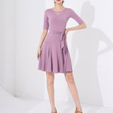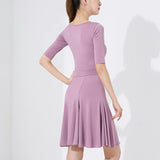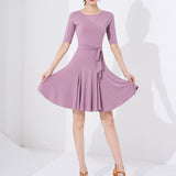 Spark the stage like a streak of lightning in this pretty latin dress. This knee-length dress features a boat neck, short sleeve. Made from polyester.