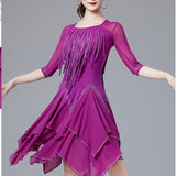 Glow under the stage lights with this stylish latin dress. This short dress features a crew neck, short sleeve. Made from polyester.