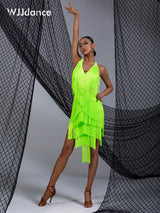 Bring about a memorable performance look with this modern latin dress. This knee-length dress features V neck, sleeveless. Made from polyester.