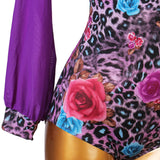 V Neck Long Sleeve Leopard Print Latin/Ballroom Leotard