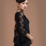 V Neck Puff Sleeve Latin/Ballroom Top with Lace