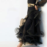 Win over any room in this elegant ballroom skirt. This maxi skirt features a regular waist, solid color pattern. Made from polyester.
